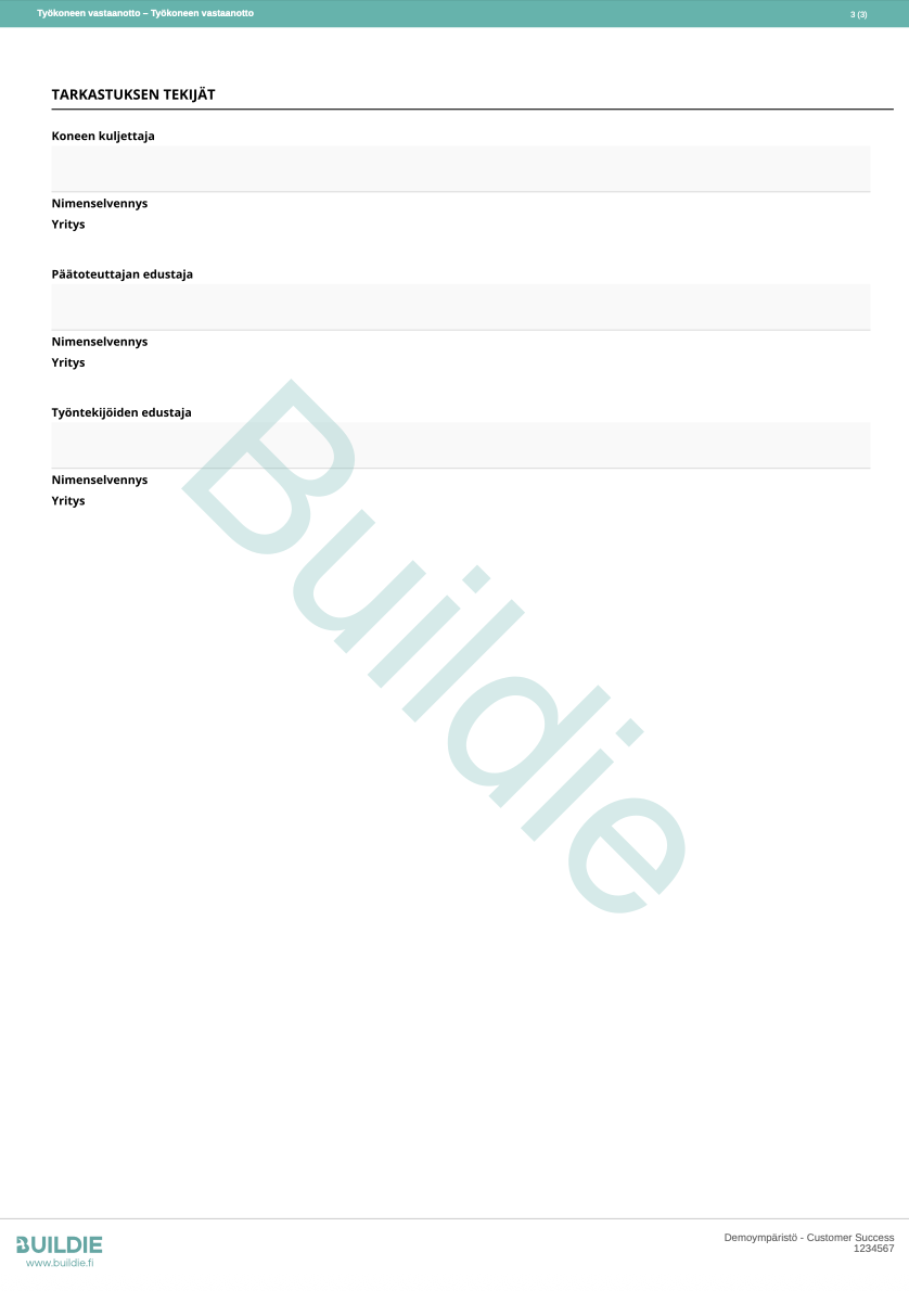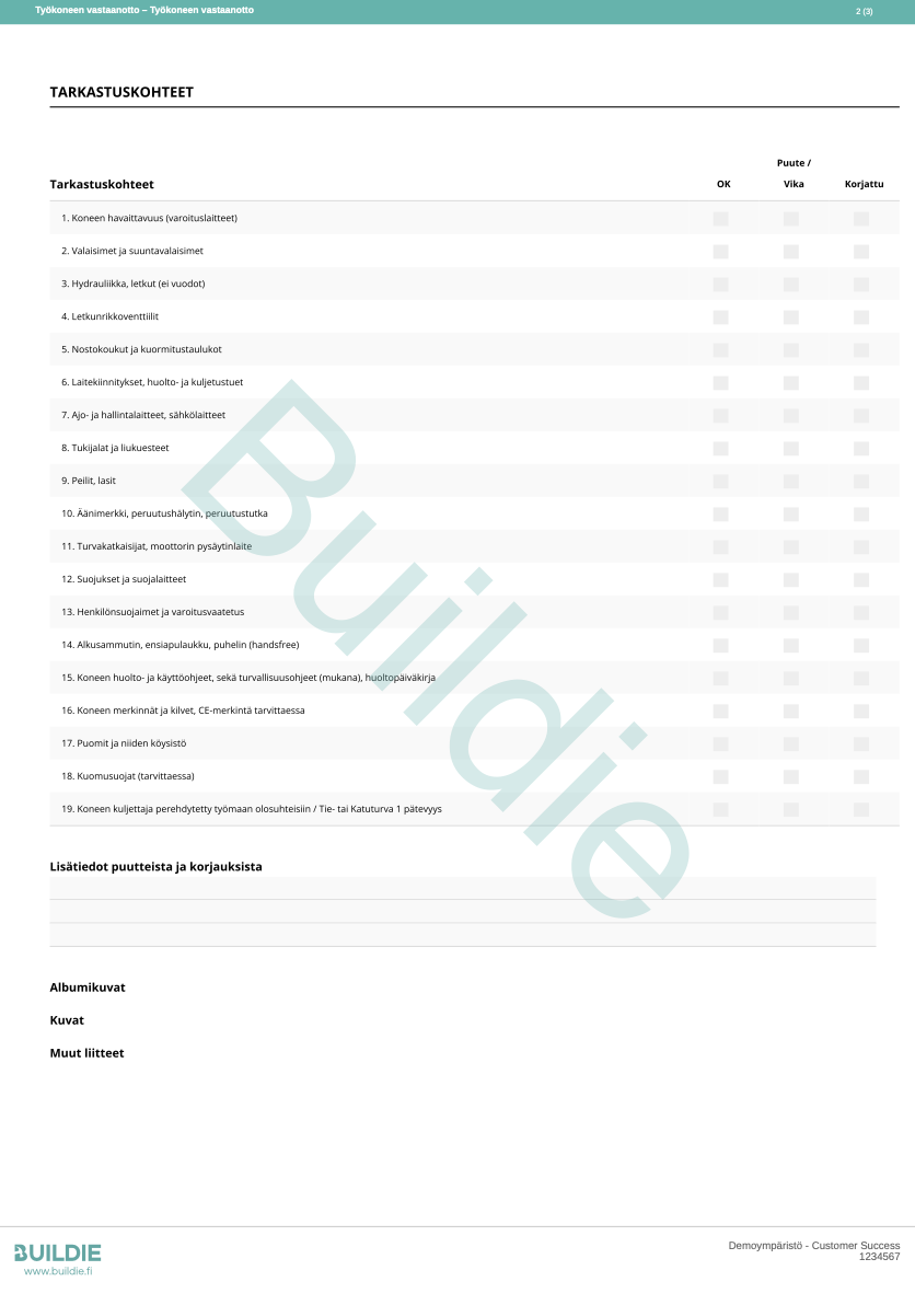 Työkoneen vastaanottotarkastuksen mallipohja