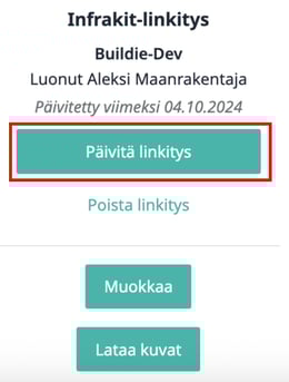 3. Näkymän vasemmasta reunasta löytyy Infrakit-integraatio, josta klikataan "Päivitä linkitys"