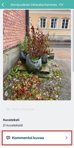 3. Voit kirjoittaa kommentin sekä tägätä työkohteella olevia käyttäjiä valokuvaan käyttämällä @-merkkiä ja valitsemalla avautuvasta listasta käyttäjän
