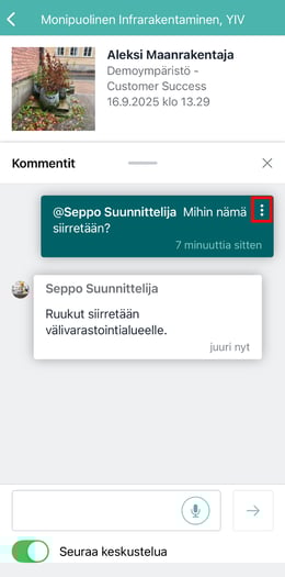 4. Pystyt muokkaamaan tai poistamaan omia kommenttejasi niiden oikeassa yläkulmassa sijaitsevasta valikkokuvakkeesta