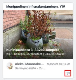 Voit tägätä käyttäjiä, jotka ovat valokuvan työkohteella mukana, jolloin valokuvan kommentista saapuu käyttäjälle ilmoitus.